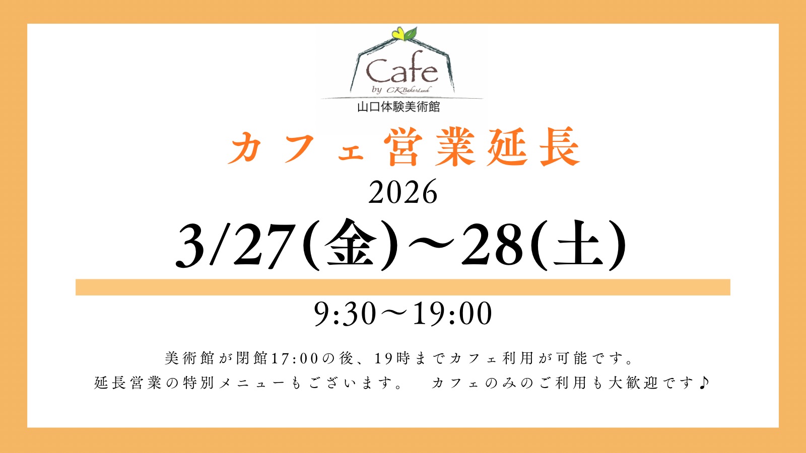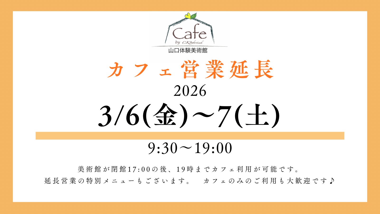 3月は下記日程にて、カフェの営業時間を延長いたします。