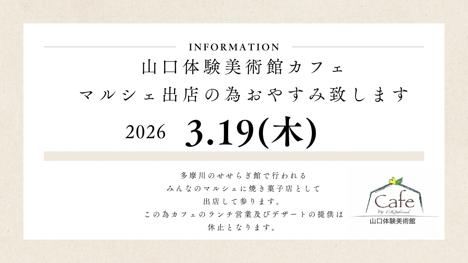 3月19日 みんなのマルシェに出店のため、カフェ休業とさせていただきます。